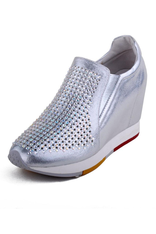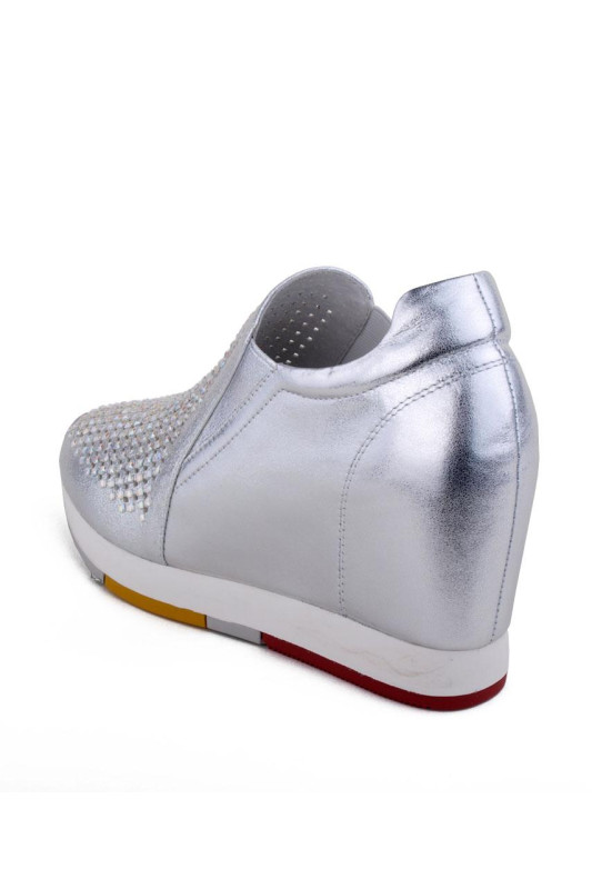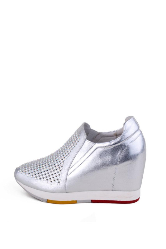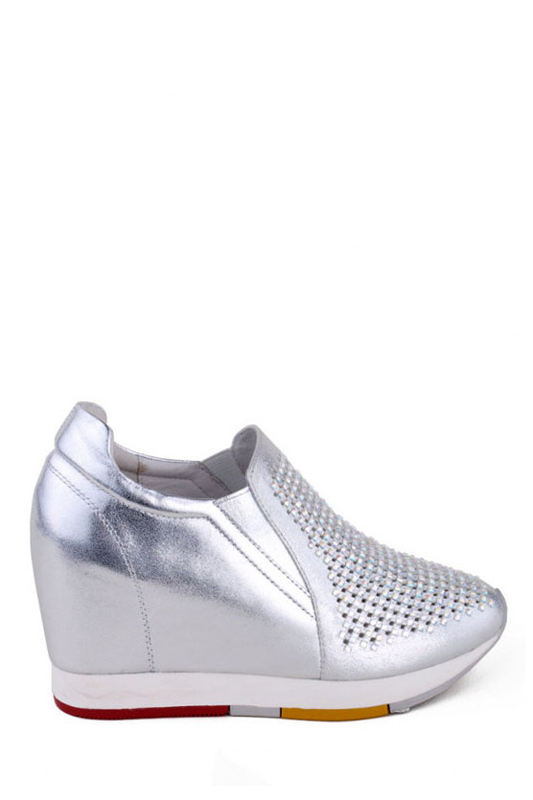 Кроссовки выполнены из кожи серебряного цвета, внутри кожа, кожаная стелька.