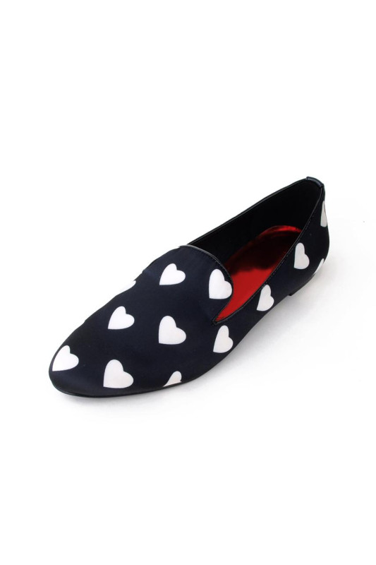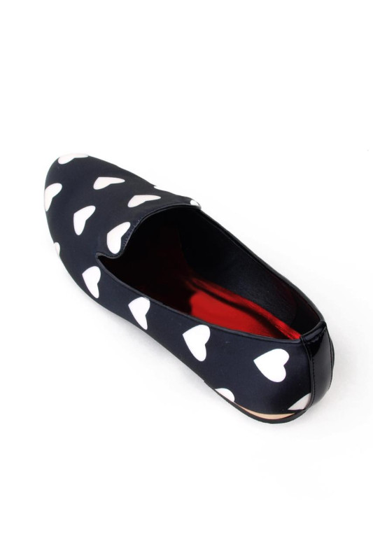 Категория | Женская обувь, атласные туфли черного цвета в белые сердечки |