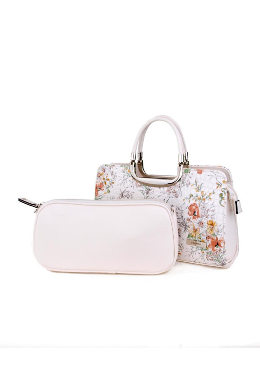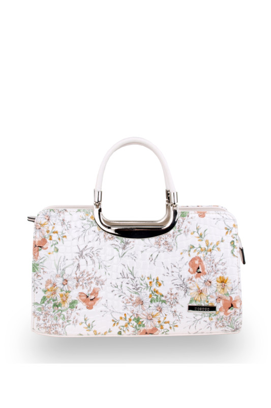 Стильная женская сумка из экокожи белого цвета с цветочным принтом Tosoco.