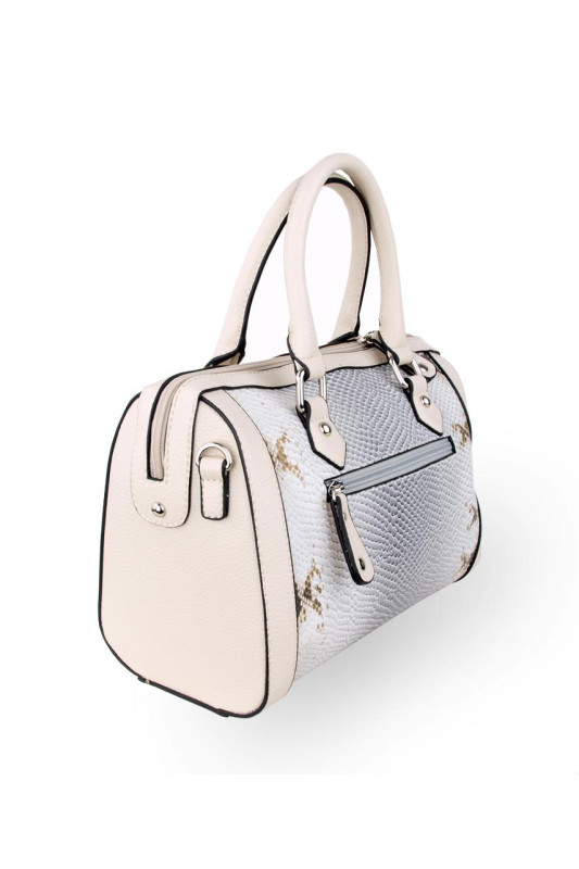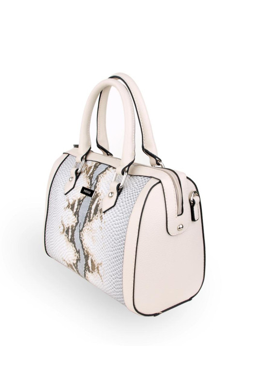 Стильная женская сумка в виде бочонка. Сумка светлого бежевого цвета.