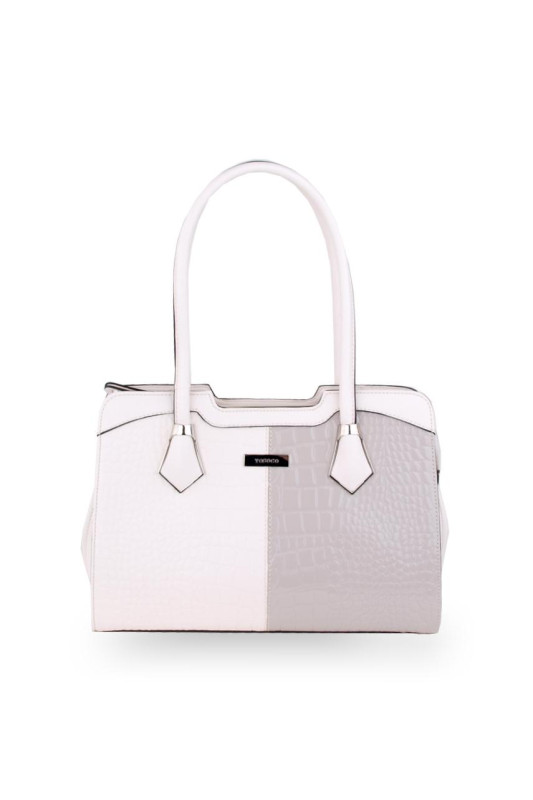 Стильная женская сумка белая с серым из экокожи Tosoco.