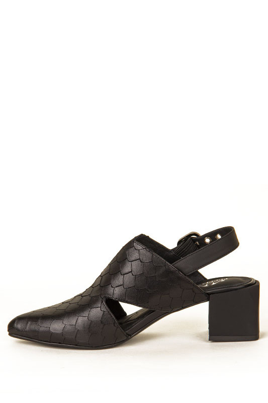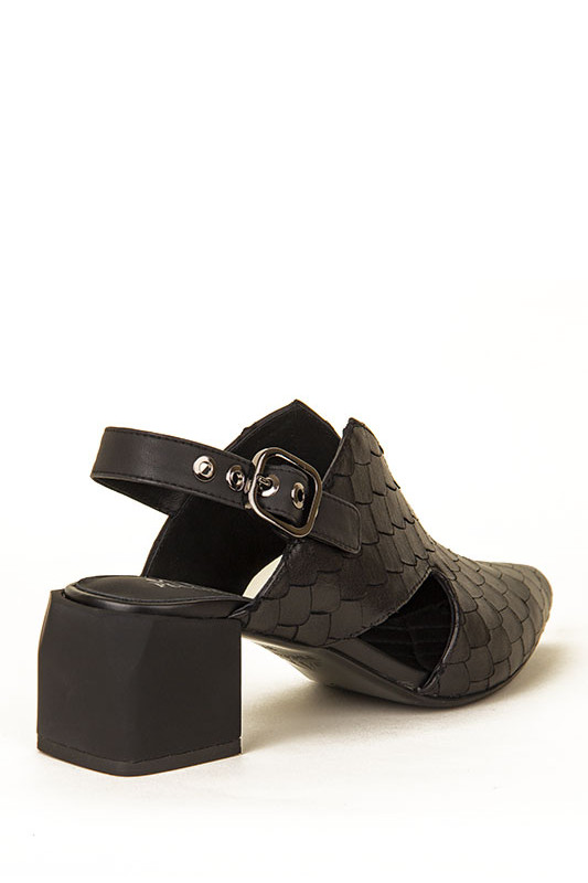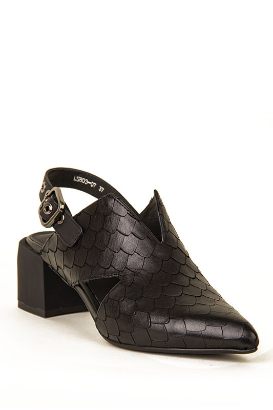 Комментарий стилиста: | Черные кожаные туфли на широком устойчивом каблуке. Заостренный мыс, тонкие ремешки с пряжкой на щиколотке. |