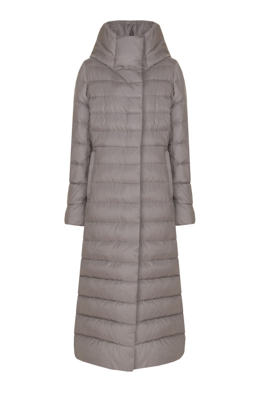 Описание: | Длинное серое пальто с горизонтальной простежкой. Застегивается на молнию под широкой планкой. Воротник-стойка, объемный капюшон. |