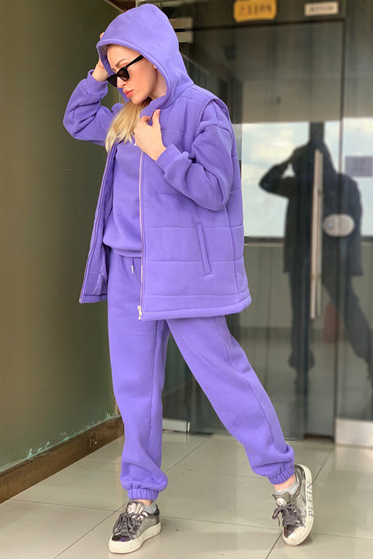 Комментарий стилиста: | Трикотажный однотонный костюм с жилеткой. Костюм состоит из брюк и джемпера, эти элементы можно носить как вместе так и по отдельности. |