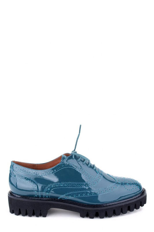 Стильная женская обувь Basconi. Туфли на низком ходу, на тракторной подошве, на шнуровке. Лаковая кожа красивого бирюзового цвета. Туфли выполнены в стиле броги. Внутри кожа, кожаная стелька.